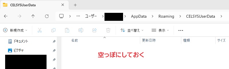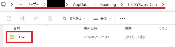 • Ver.1.10.13以降:C:\Users\(ユーザー名)\AppData\Roaming\CELSYSUserData