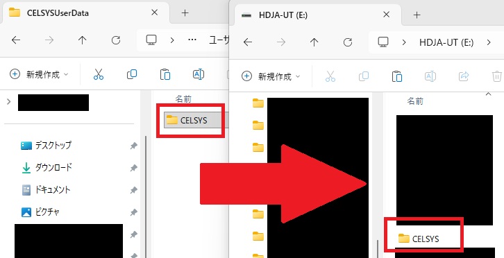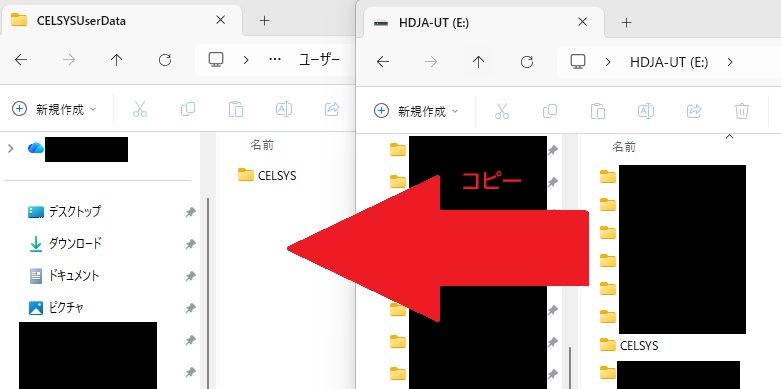 外付けHDD側に古い「CELSYS」フォルダがない場合はそのままコピーして大丈夫です