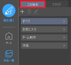 「作品一覧」ページを開いたら、「この端末」タブをクリック👇