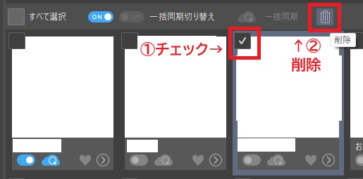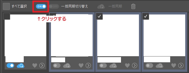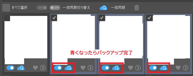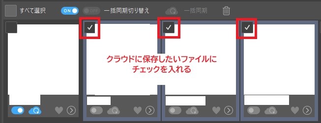 - クラウドに保存したい作品のチェックボックスをONにする👇