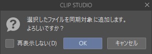 「選択したファイルを同期対象に追加します。」という確認が出るので、「OK」を押す