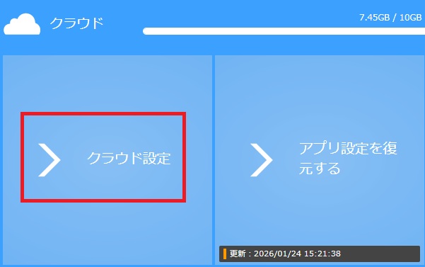 - 「クラウド設定」をクリック