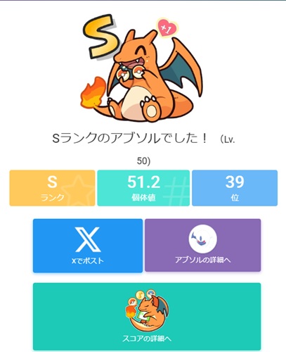これまでに個体値チェックを行った人と比較されて、ランキングも出るようになっています。