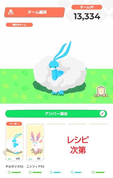 きのみタイプがなんとチルタリスしかいなかったため、きのみタイプ枠は問答無用でチルタリスに決定です(ついでにチームリーダーにもしちゃう)。