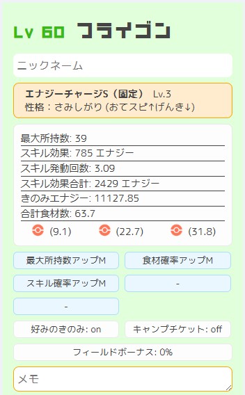 ポケモンスリープ-フライゴンの評価と厳選基準。実際の使用感は結構いい